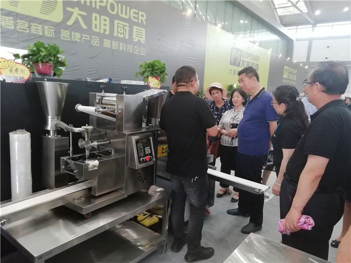"您看這邊,智能面條機(jī)9秒就能將面粉生成鮮面條,智能炒菜機(jī)器人,可降低人工成本60%以上,提升出品速度3倍,還有仿手工餃子機(jī)、包子機(jī)......"現(xiàn)場(chǎng)正在給客戶演示產(chǎn)品的大明廚具事業(yè)部負(fù)責(zé)人告訴記者,高科技智能化產(chǎn)品讓人一飽眼福和口福,難怪大明廚具的展位上人頭攢動(dòng),門庭若市,參觀者絡(luò)繹不絕.